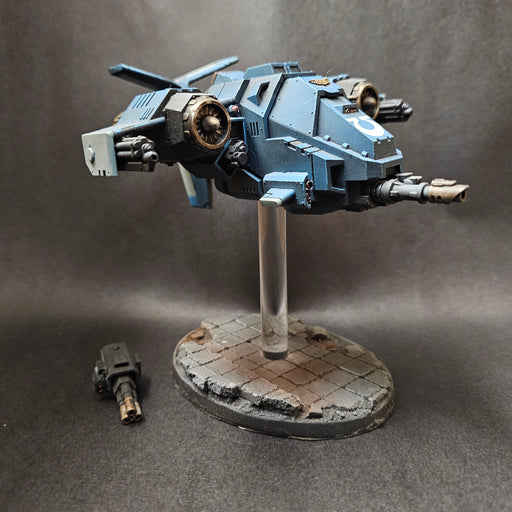 Bazooka GamesDescription: Based and well painted Space Marines Stormhawk Interceptor.3rd party flight stand/ base.